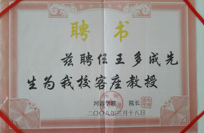 2008年河西學(xué)院客座教授聘書(shū)
