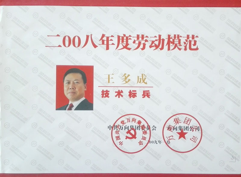 | 榮獲2008年度萬(wàn)向集團(tuán)勞動(dòng)模范證書(shū) | ||