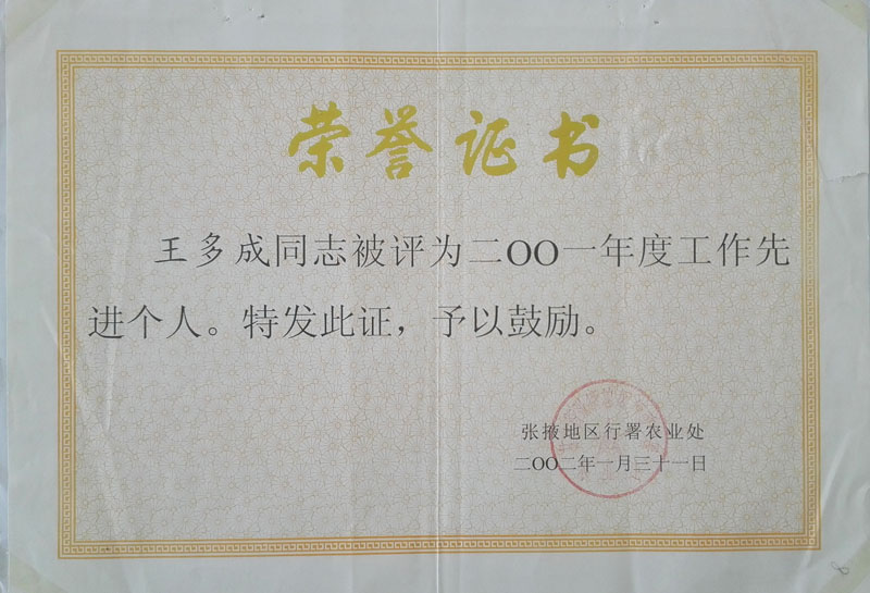 2001年度工作先進個人